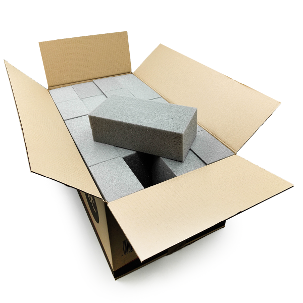 Houby pro kompozice v nádobách - Pokud tvoříte kompozice v nádobách nebo flowerboxech, ideální volbou bude standardní mokrá nebo suchá houba, kterou lze libovolně řezat a přizpůsobit nádobě.