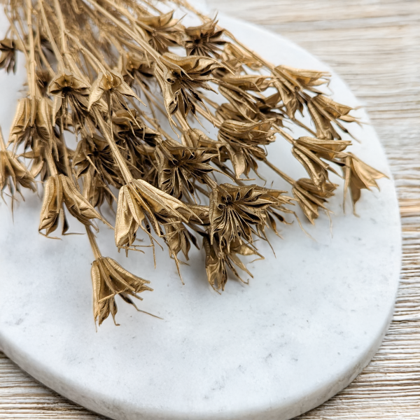 Sušené rostliny představují ideální alternativu k umělým ozdobám. Nejenže vypadají efektně, ale jsou také plně biologicky rozložitelné. Mezi nejčastěji vybírané druhy patří Phalaris, mák, eukalypty, ruscus, Nigella, bavlna a Amarant (laskavec). Právě tyto sušené rostliny tvoří základ většiny vánočních aranžmá – od klasických svícnů po moderní stolní dekorace.