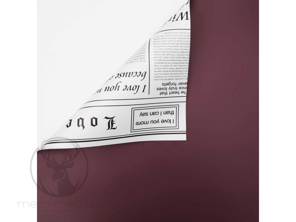 Voděodolná floristická fólie typu „novinového papíru“ je estetickou a funkční alternativou k běžnému balicímu papíru. Na jedné straně má elegantní matný cinoberový odstín a na druhé bílý potisk ve stylu novin, což tomuto spojení dodává jedinečný charakter. Je skvělá pro použití v květinářství, balení dárků i pro DIY dekorace, protože je voděodolná, odolná proti mačkání a deformaci. Výjimečný kontrast mezi textovým potiskem a hlubokým cinoberovým pozadím vám umožní vytvářet originální a zapamatovatelné kompozice.