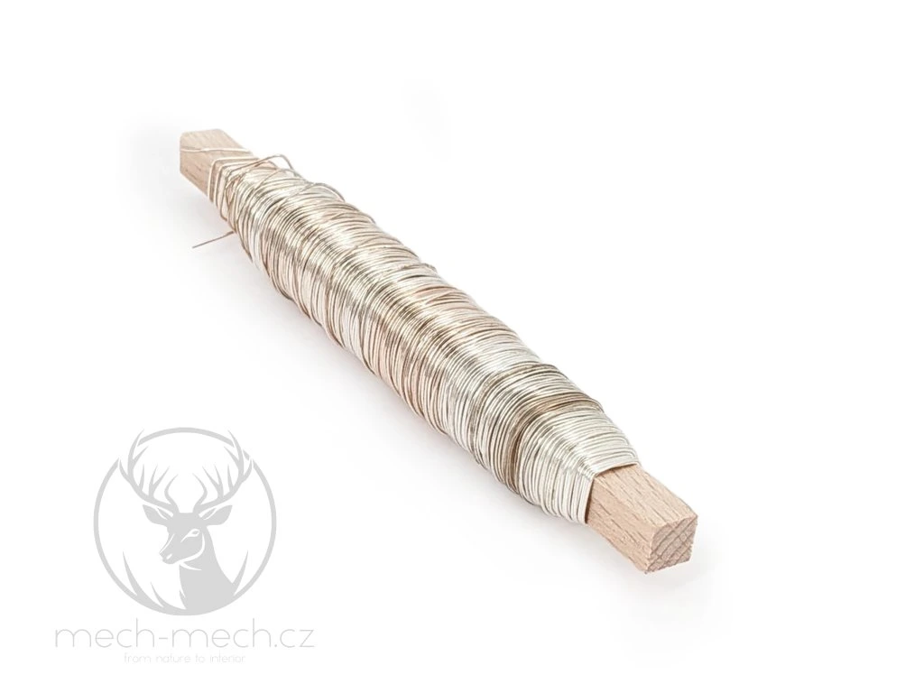 Stříbrný vázací floristický drát je navinut na dřevěném kolíčku, díky čemuž se snadno odvíjí a manipulace s ním je velmi pohodlná. Díky své vysoké pevnosti a zároveň mimořádné pružnosti je skvělou pomůckou pro drátkování stonků řezaných květin, ale také bonsají a dalších dřevin, které s jeho pomocí zpevníte a můžete snadno tvarovat do požadovaného směru. Tento drát však neslouží pouze jako technická opora; jeho zářivý stříbrný povrch z něj činí výrazný dekorativní prvek.
