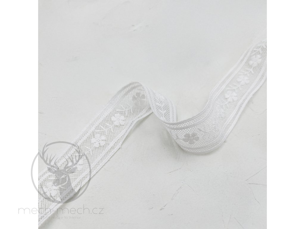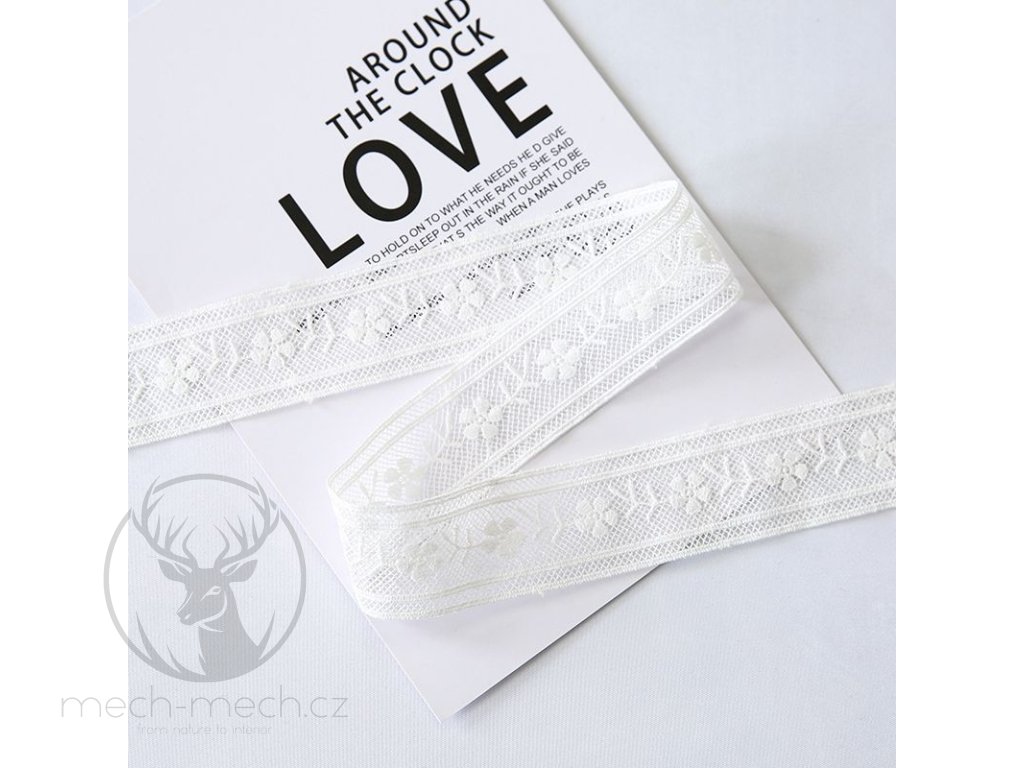 Krajková stuha – Bílá Růžička – 3cm × 4m