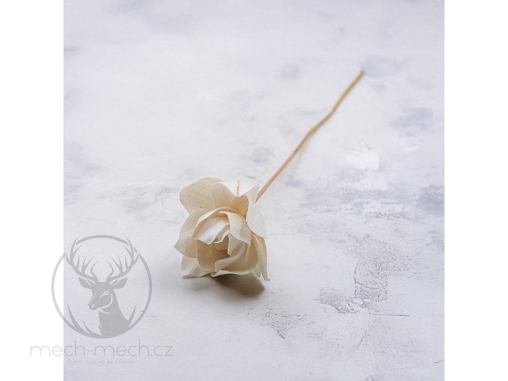 Květina je upevněna na dřevěném stonku o délce 45 cm.