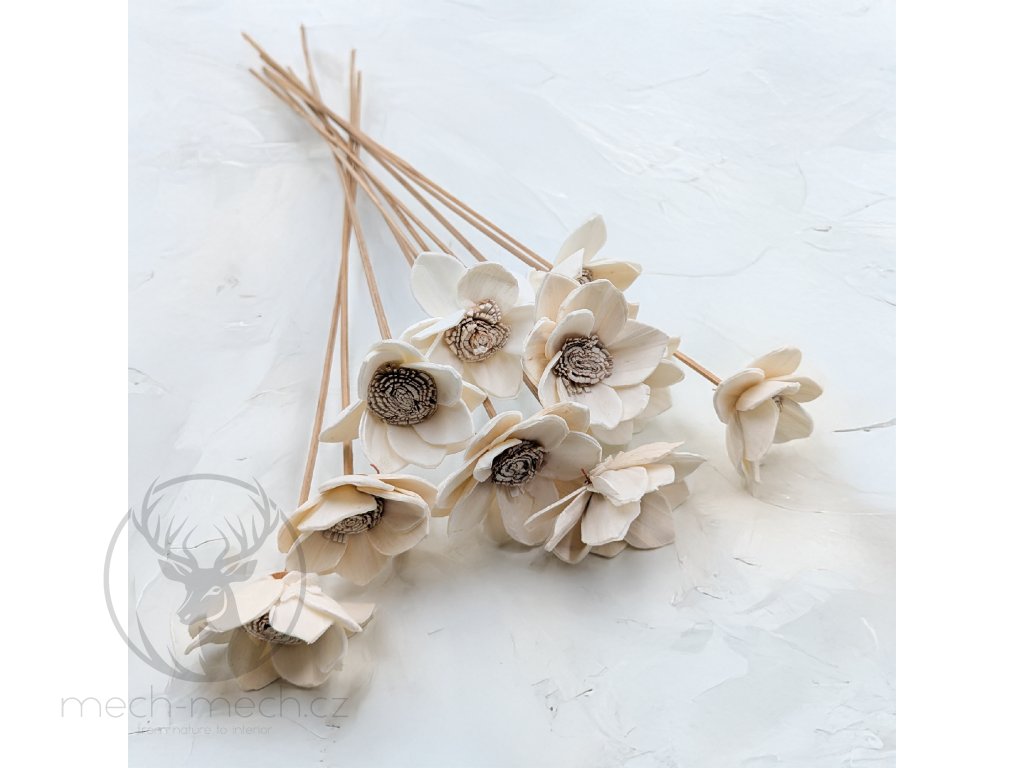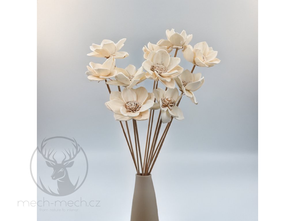 Květina je upevněna na dřevěném stonku o délce 45 cm.