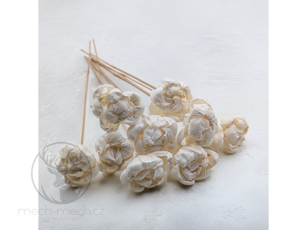 Květina je upevněna na dřevěném stonku o délce 45 cm.