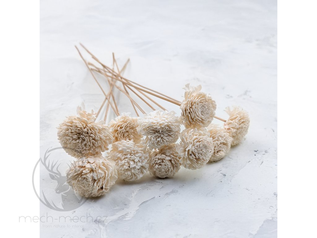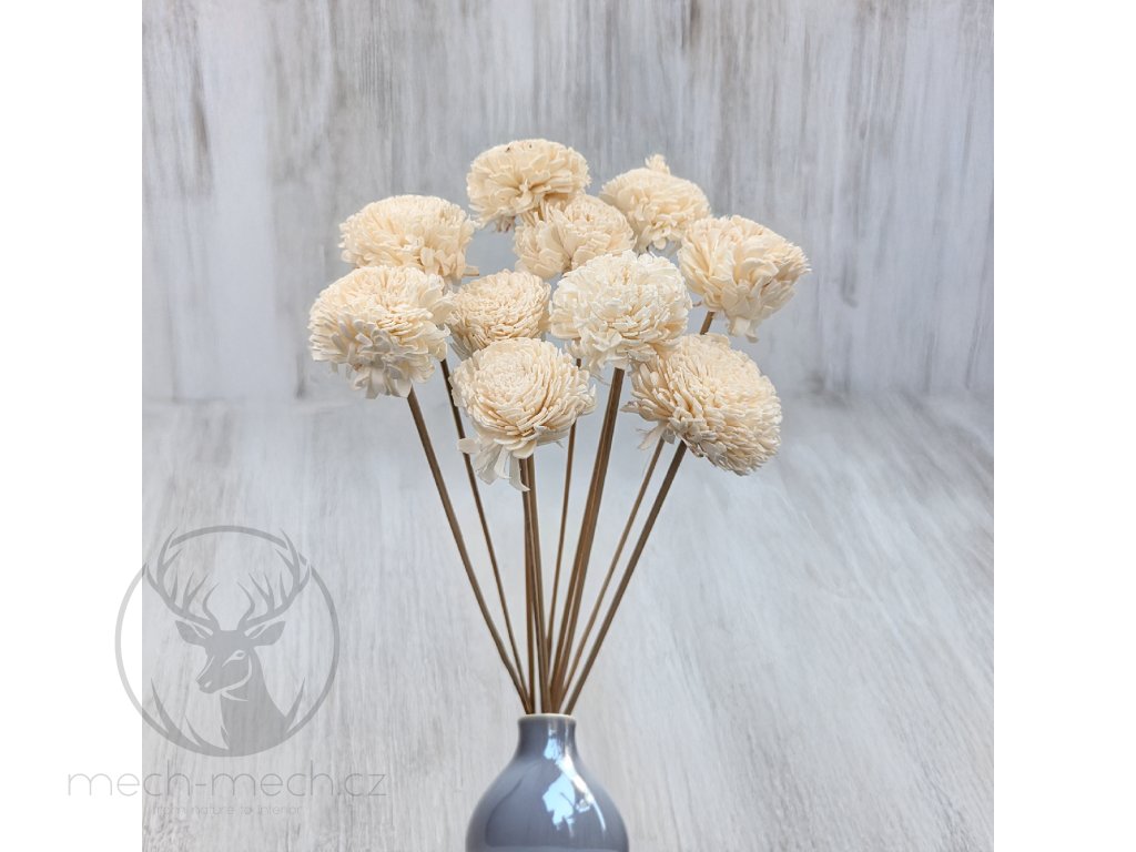 Květina je upevněna na dřevěném stonku o délce 45 cm.