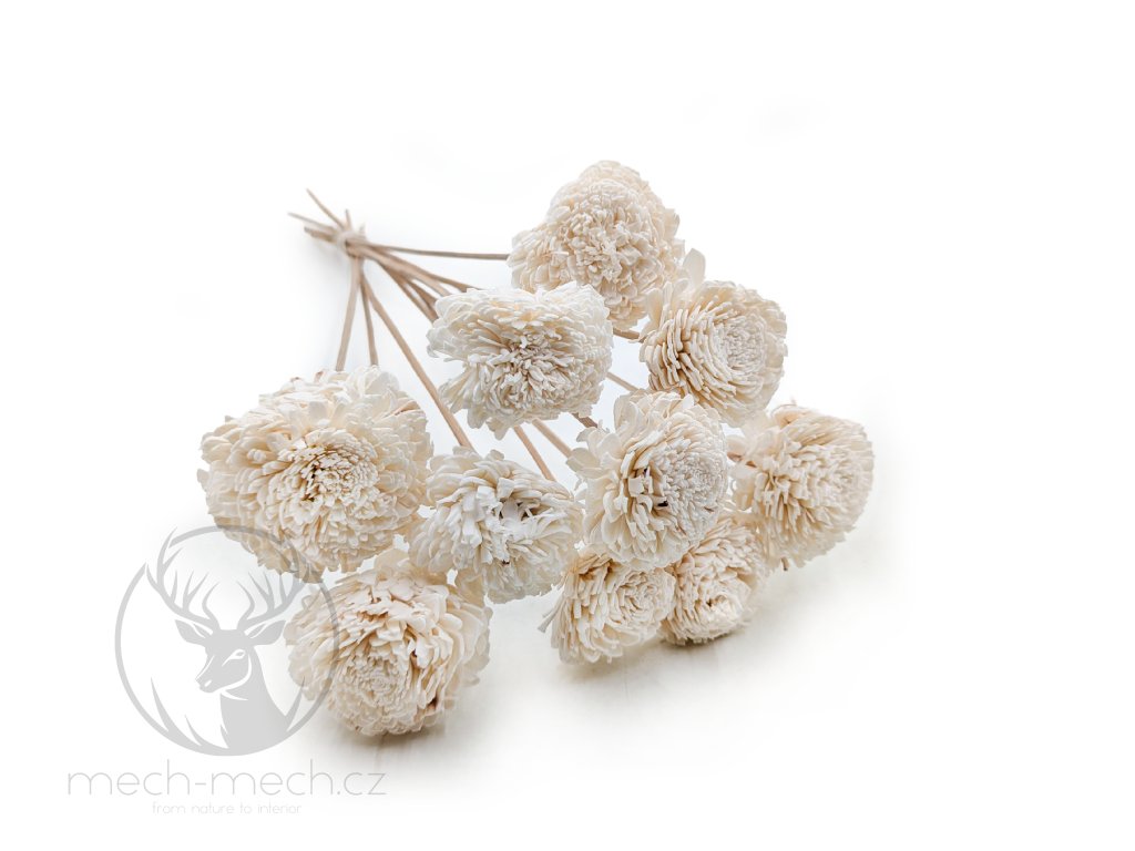 Shola Milky Way je ručně formovaný květ s jemnou, prostornou strukturou, připomínající rozkvétající hvězdu; každý květ má průměr přibližně 6 cm a je umístěn na dřevěném stonku o délce 45 cm. Je vyroben z přírodního rostlinného materiálu a vnáší do aranžmá klid a harmonii. Květiny Shola Milky Way vznikají z lehkého, biologicky rozložitelného rostlinného jádra. Každý exemplář je unikátní – může se lišit tvarem, barvou i strukturou; drobné pomačkání nebo nepravidelnosti jsou přirozeným projevem ruční práce a podtrhují její autenticitu, přičemž okvětní lístky lze v případě potřeby opatrně narovnat. Model Milky Way symbolizuje čistotu, lehkost a harmonii přírody. Jeho hvězdicové uspořádání okvětních lístků zajišťuje, že se dokonale kombinuje se sušenými travami, eukalyptem či nevěstiným závojem; je ideální pro dekorace ve stylu boho, japandi, rustikálním a moderním. Květiny Shola Milky Way jsou vhodné pro svatební kompozice a boho kytice, dekorace váz a interiérů, DIY projekty a přírodní floristiku, a také pro aranžmá ve stylu japandi a organický minimalismus.