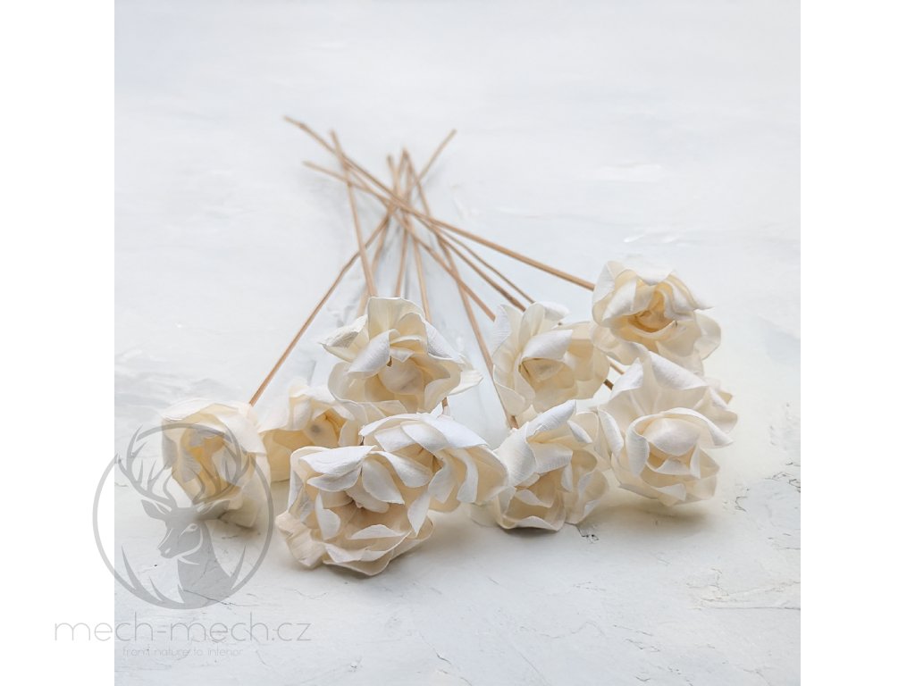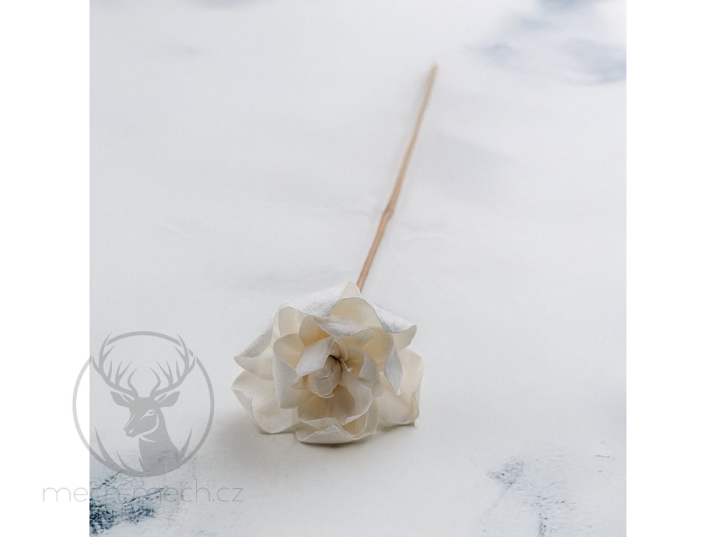 Květina je upevněna na dřevěném stonku o délce 45 cm.