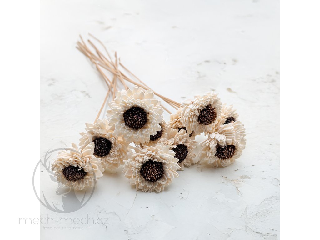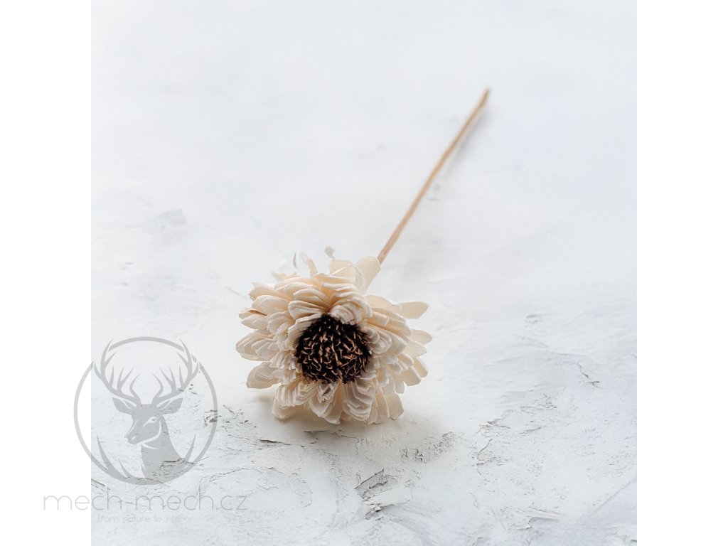 Květina je upevněna na dřevěném stonku o délce 45 cm.