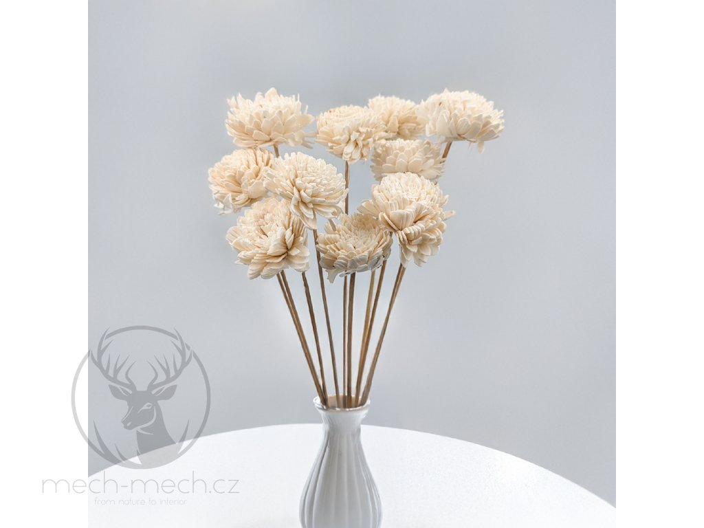 Květina je upevněna na dřevěném stonku o délce 45 cm.