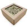 Finský mech prémium v odstínu bílé je unikátní přírodní materiál určen pro výrobu obrazů, rámů a dekorací, které vám budou v interiéru dělat radost celé roky. Jeho přírodní vzhled a příjemná textura přispějí k vytvoření příjemné a relaxační atmosféry. Finský mech má největší hlavy (větší než Alpský a Norský mech) a je dodáván nejlépe vyčištěný, což znamená že v něm nenajdete žádné zbytky živých organismů, větviček a lesního podrostu. Výrobek je impregnován trvalým přírodním barvivem a má svou specifickou vůni, která se zhruba do 4-6+ týdnů odvětrá. Mech je stabilizován což znamená, že již nadále neroste a nedá se namnožit. Ideální pro dekorace panelů, obrazů a dalších doplňků. Finský sobí mech má zároveň nejvyšší barevnou škálu, kde můžete vybírat z odstínů: letní zelené, zelené, limetkové, červené, středně zelené, žluté, fuchsie, světle zelený, tmavě zelený, tmavě žlutá, khaki zelená, olivový, modrý, černý. Stejně jako ostatní druhy mechu nepotřebuje zavlažování. Nedoporučuje se umisťovat v blízkosti zdroje tepla či na přímé slunce.