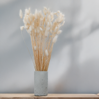 Sušený Lagurus, neboli králičí ocas, je jemná, nadýchaná tráva s charakteristickými vejčitými květenstvími. Po usušení si zachovává svůj tvar a stává se výjimečně odolnou ozdobou. Lagurus je neobyčejně lehký, nevyžaduje žádnou péči a jeho vzhled zůstává beze změny po dlouhé měsíce. Z tohoto důvodu je sušený Lagurus skvělou volbou pro lidi, kteří hledají odolné, bezúdržbové dekorace.