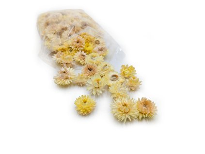 Sušené květy Slaměnky, známé také jako Helichrysum, jsou okouzlujícím a odolným květinovým prvkem, který zdobí prostory svou mimořádnou krásou a barvami. Tyto krásné sušené květiny lze nalézt v různých odstínech, jako je oranžová, bílá, žlutá, růžová a blankytná či fuchsiová což vám umožní vytvářet úžasné kompozice a dekorace. Skvěle ladí například se sušeným lnem, levandulí nebo obilovinami. Sušené květy Slaměnky vypadají krásně také jako samostatná dekorace - stačí dát barevnou kytici do vázy a získat krásnou výzdobu místnosti. Krásně zachovalé barvy znamenají, že se sušenými květinami dostupnými v této kategorii můžete vytvořit mnoho působivých kompozic. Slaměnka zaujme přirozeným vzhledem květů, které neztrácejí kouzlo typické pro tento druh. Navíc je to sušená rostlina, takže ji můžete snadno použít jako prvek různých dekorací. Skvěle se bude vyjímat jako dekorace do pokoje nebo jako součást kompozic používaných při zvláštních příležitostech. Díky těmto vlastnostem je Helichrysum výbornou volbou pro zákazníky, kterým záleží na přirozeně vypadajících rostlinách.