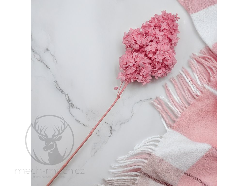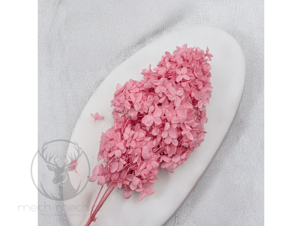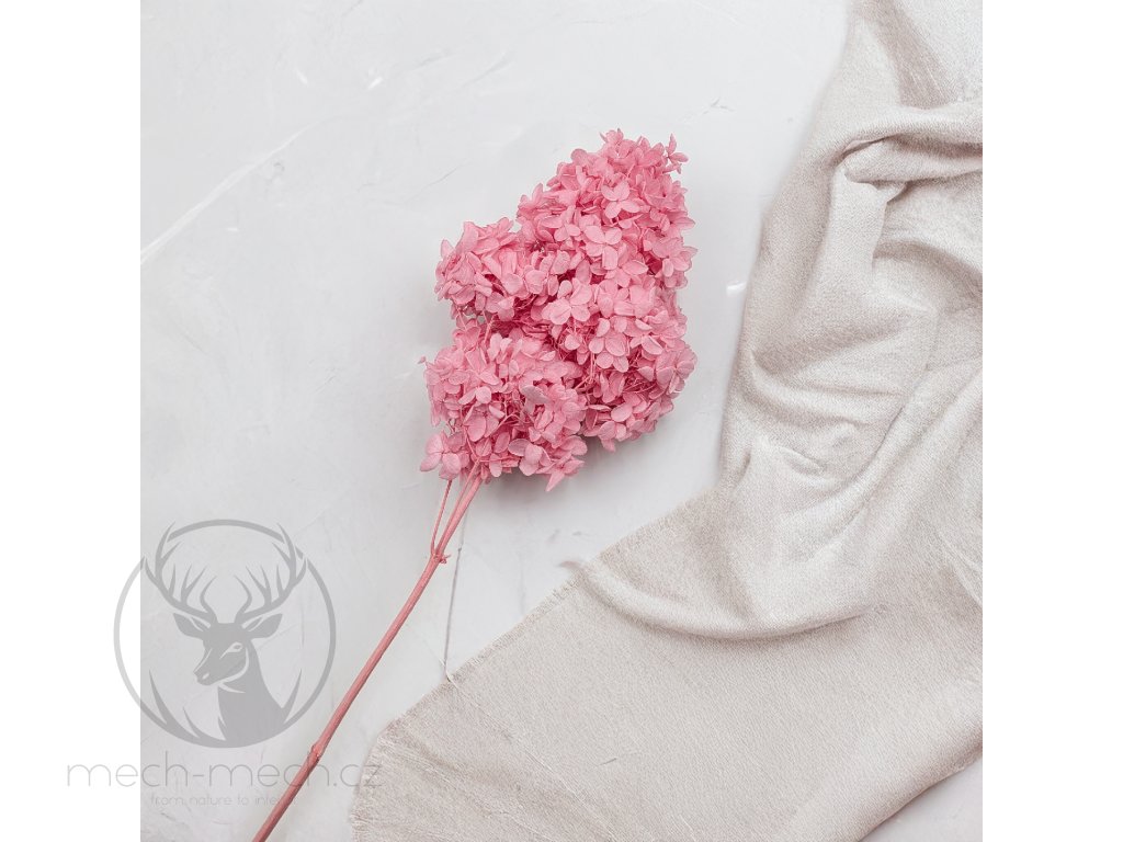 Stabilizované hortenzie jsou obzvláště praktické, protože jsou odolné a nevyžadují žádnou péči, přičemž díky své dlouhé trvanlivosti představují ideální dekorativní prvek do interiérů, kde by byla údržba živých květin náročná. Tato jedinečná, krásná a podmanivá květina v růžovém odstínu vnáší do prostoru pocit něhy a skvěle se kombinuje s přírodními materiály, šedými doplňky nebo světlým dřevem. Růžová barva je symbolem náklonnosti a nadčasovosti – zosobňuje jemnost, romantiku a harmonii, přičemž na pohled působí velmi hřejivým a elegantním dojmem. Lze ji snadno umístit do váz, použít při tvorbě snových kytic nebo jako součást svatebních a slavnostních dekorací. Díky své podmanivé barvě dodává stabilizovaná hortenzie každému aranžmá nádech romantiky, klidu a jemné elegance. Hodí se nejen do vintage kompozic, ale i do moderních a skandinávských interiérů, kde naplno vynikne její originální a bohatý vzhled.
