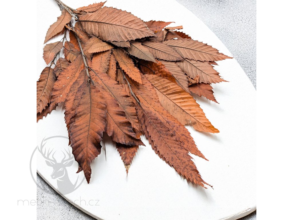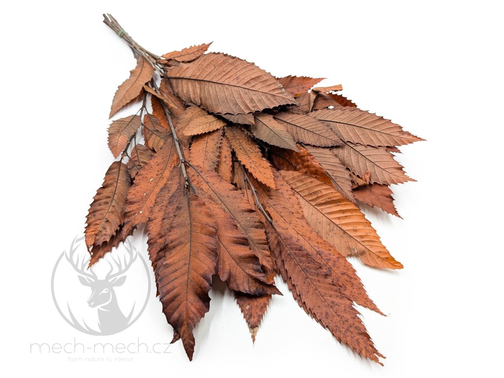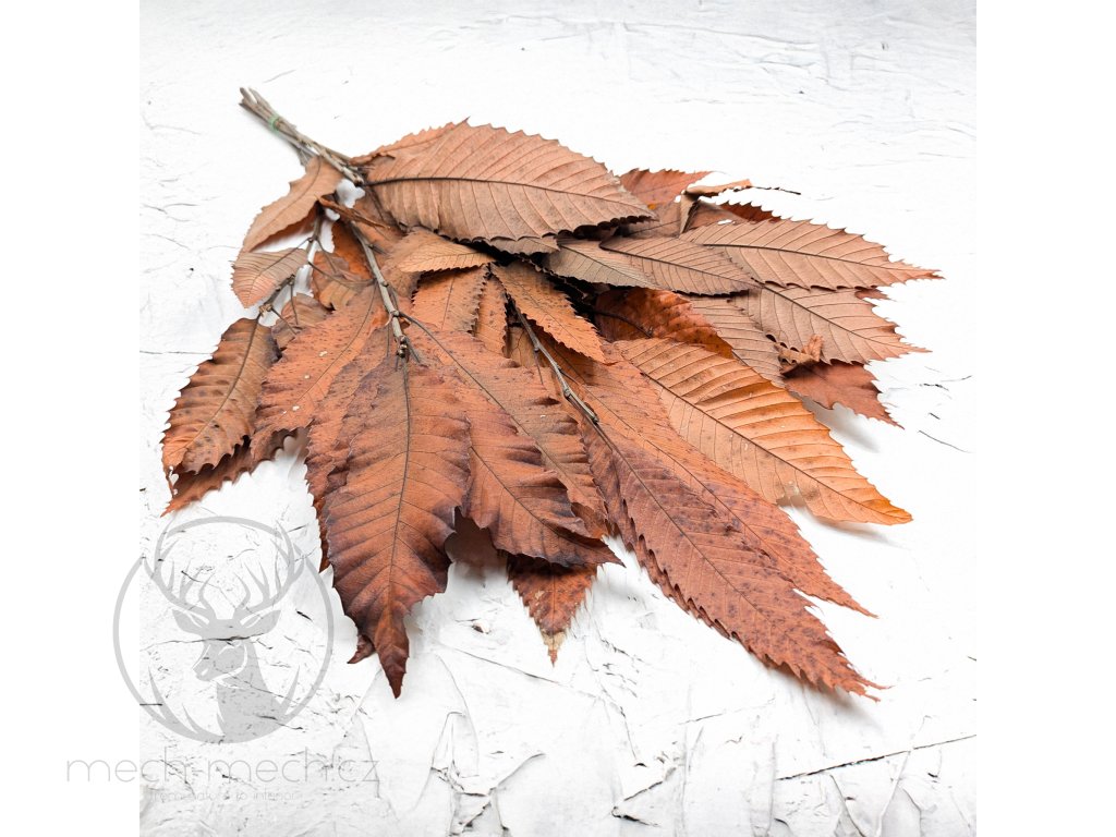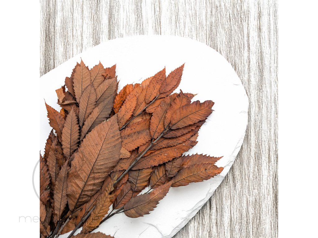 Stabilizovaný kaštan v oranžovém podzimním odstínu je výjimečný dekorační materiál, který okouzluje přírodní formou a hloubkou barev. Listy kaštanu (Castanea sativa) byly fixovány procesem stabilizace, díky čemuž si zachovaly svůj tvar, texturu a pružnost. Teplé odstíny hnědé, rezavé, měděné a oranžové barvy dokonale vystihují atmosféru podzimních aranžmá. Díky stabilizaci větve neuvadají, nedrolí se a vydrží krásné po mnoho let bez jakékoli péče. Vytvořte si z nich jedinečné podzimní věnce nebo je použijte jako výrazný prvek do suchých kytic. Jejich robustní a detailně propracované listy dodají každé kompozici rustikální, ale zároveň velmi elegantní nádech. Tento ekologický produkt v sytě oranžovém provedení přináší kousek podzimního lesa přímo do vašeho domova, kanceláře či ateliéru.
