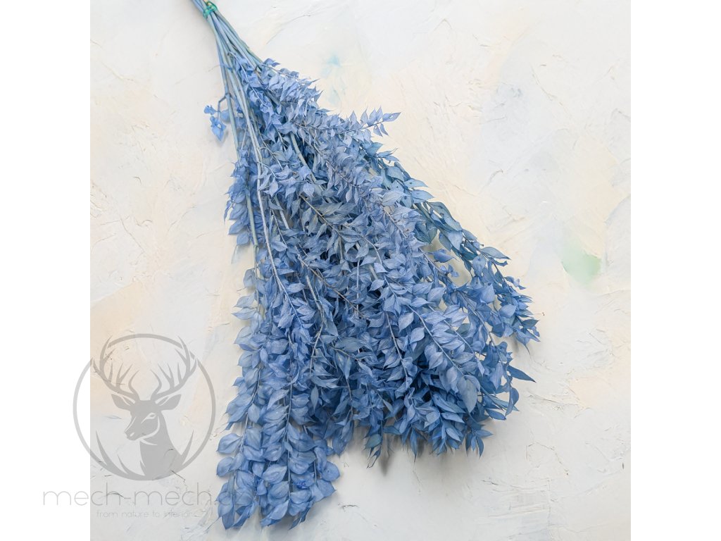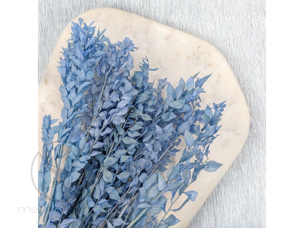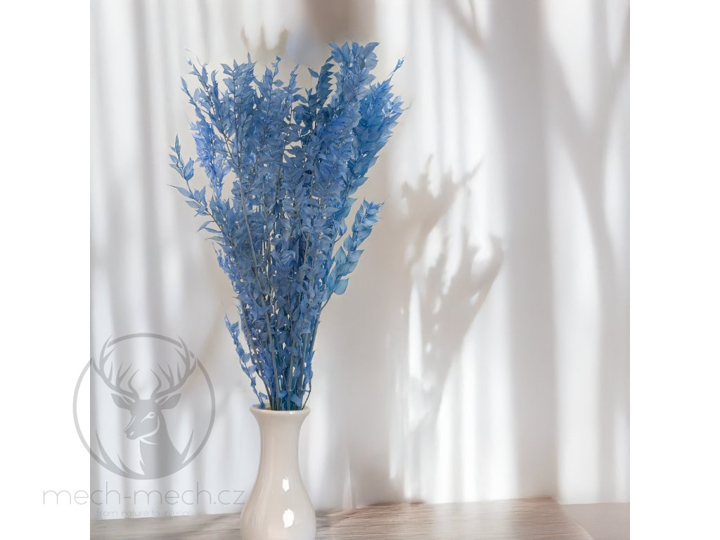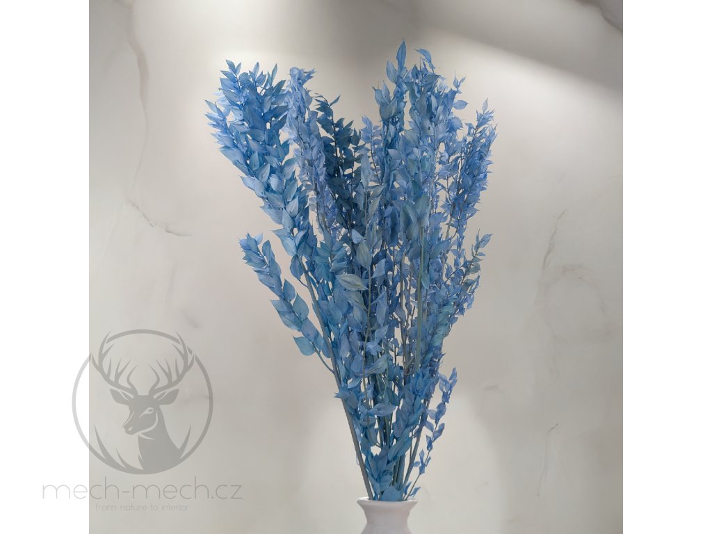 Stabilizovaný ruskus v ocelově modré barvě je moderní a elegantní dekorační prvek, který vyniká svým chladným a sofistikovaným odstínem. Díky speciálnímu procesu stabilizace si uchovává svou přirozenou strukturu, svěží vzhled i pružnost po mnoho měsíců, aniž by vyžadoval jakoukoliv péči. Jeho jedinečný odstín, který symbolizuje klid a eleganci, se skvěle hodí do minimalistických, glamour i současných aranžmá a výborně se kombinuje s bílou, šedou, stříbrnou či pastelovými tóny, čímž dodává kompozicím styl a nadčasovost. Stabilizovaný ruskus v ocelově modrém provedení je ideální pro floristiku, interiérový design, svatební výzdobu i kreativní DIY projekty.
