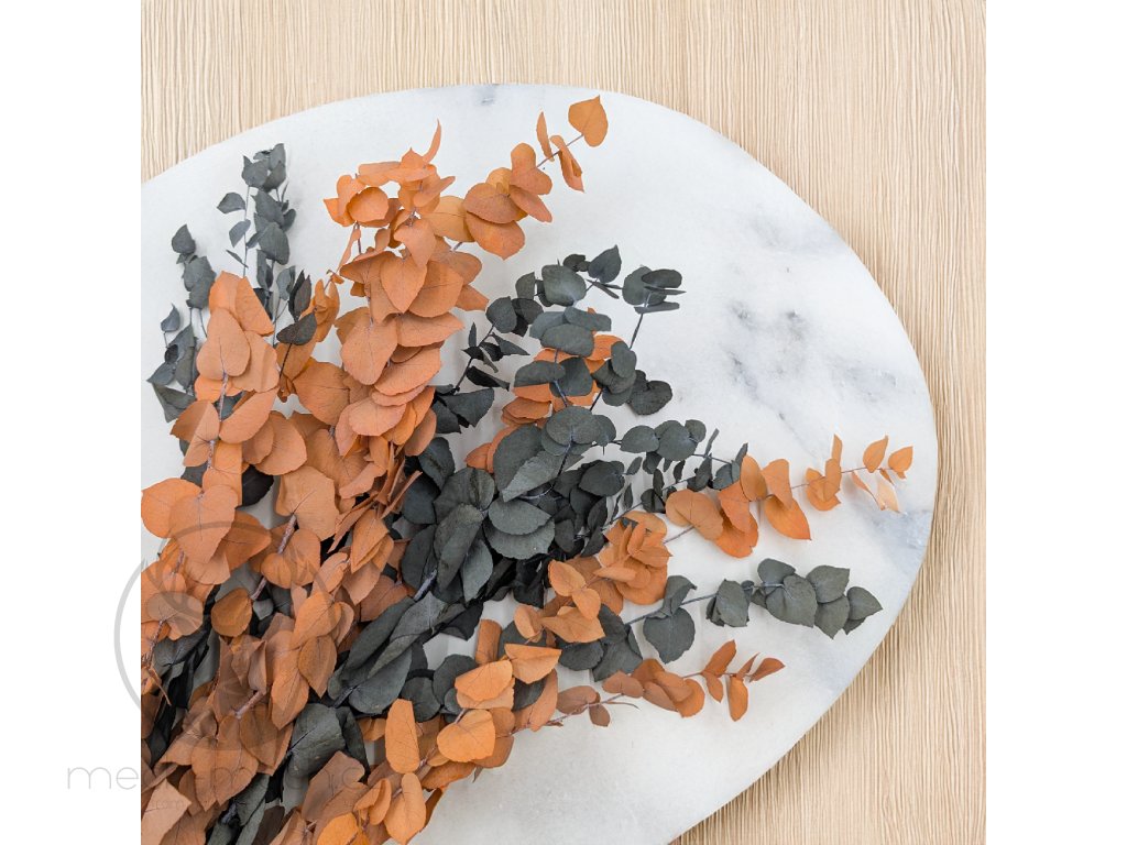 Stabilizovaný eukalyptus Stuartiana v provedení Halloween je jedinečná dekorace, která spojuje oranžové a černé listy, což z něj dělá perfektní volbu pro podzimní i halloweenské aranže. Díky stabilizaci si listy uchovávají svou přirozenou strukturu a barvy, a dekorace tak zůstane trvanlivá a působivá. Kombinace energické oranžové, symbolizující radost podzimu, a černé, která značí tajemství a eleganci, vytváří výrazný kontrastní akcent. S délkou přibližně 60 cm a hmotností 150 g se Stuartiana Halloween skvěle hodí do kytic, věnců, stolních aranžmá i DIY projektů. Pro dokonalý výsledek jej můžete zkombinovat s mini pampovou trávou, běleným phalarisem nebo sušenou levandulí.