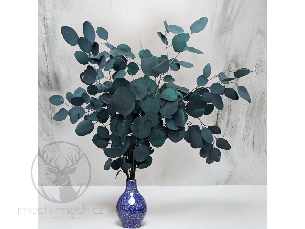 Stabilizovaný eukalyptus Populus je jedinečný dekorační materiál s velkými oválnými listy, který si díky procesu stabilizace zachovává svůj přirozený vzhled a pružnost po dlouhé měsíce bez potřeby zalévání. Jeho sytá, tmavá zeleň s chladným tónem dodává aranžmá elegantní a výrazný charakter. S délkou přibližně 60 cm a hmotností 150 g se skvěle hodí do svatebních kytic, floristických aranžmá, interiérových dekorací i moderních DIY kompozic. Eukalyptus Populus, který symbolizuje trvanlivost a rovnováhu, je ideální jako dominantní prvek kytic nebo jako pozadí pro světlé květy, skvěle se kombinuje s běleným lagurusem a pampovou trávou.