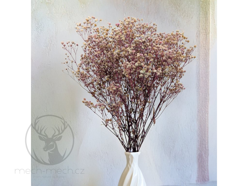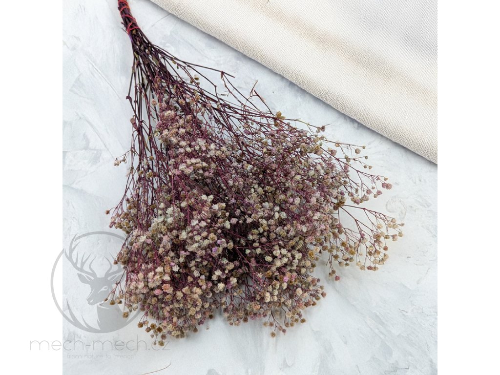 Stabilizovaný Šater (Gypsophila) ve fialovo-krémovém odstínu zaujme svou jemností a originální kombinací barev, neboť se v něm prolínají světlé krémové poupata s pastelovou fialovou a vytvářejí elegantní a romantickou kompozici. Tato ideální volba pro ty, kteří oceňují neotřelé detaily ve floristice, se hodí na svatební a první přijímací kytice, dekorace stolů a flowerboxů, DIY projekty, či interiérová aranžmá v romantickém a elegantním stylu.