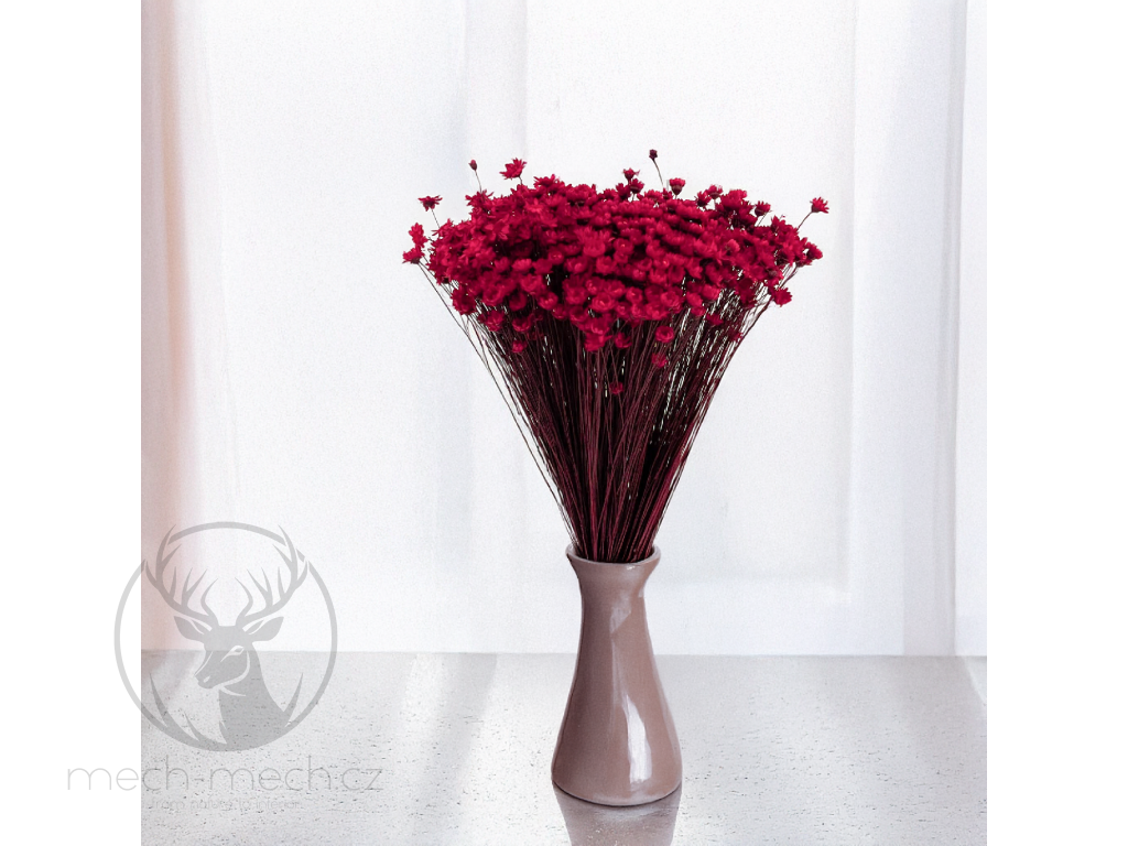 Červená Glixia je ideální pro všechny romantiky, ale nejen to – i pro ty, kdo hledají dekoraci bez náročné péče, která vám ozvláštní celý prostor. Její syté červené kvítky si zachovávají svou krásu po dlouhou dobu. Díky procesu sušení si Glixia zachovává svou původní krásu bez nutnosti zvláštní péče, což z jejích květů činí skvělou a p