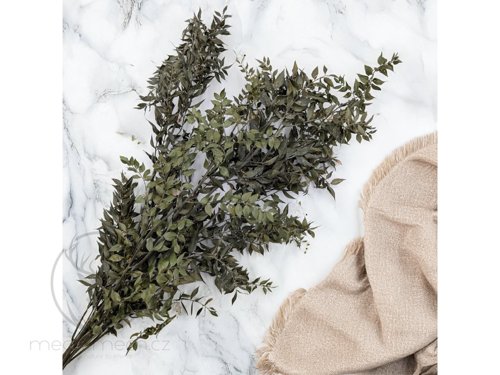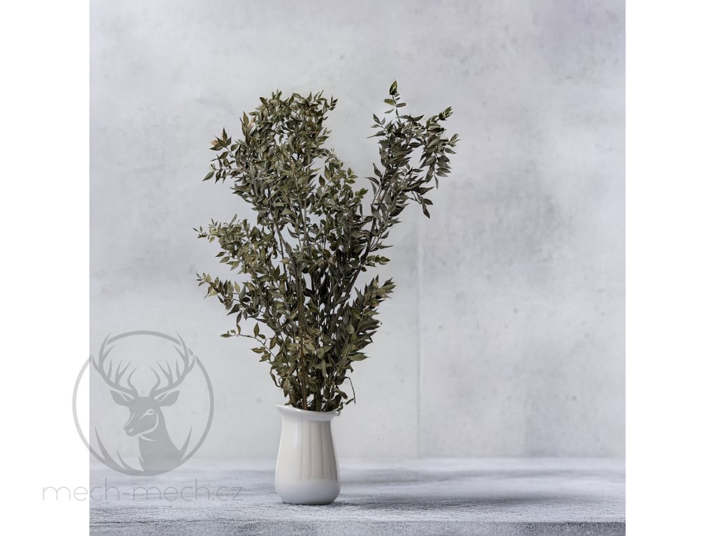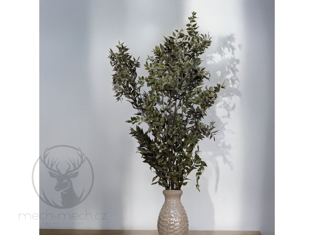 Sušený ruskus je všestranný dekorativní prvek, který se skvěle hodí do každého interiéru. Jeho vínová barva a elegantní tvar listů umožňují snadné kombinování s různými styly. Díky přirozenému procesu sušení si zachovává svou strukturu a barvu po dlouhou dobu – bez potřeby zalévání nebo zvláštní péče. Je to ideální volba pro ty, kteří hledají trvanlivou, přírodní a zároveň nenáročnou dekoraci.