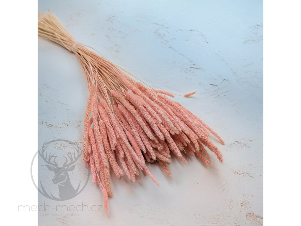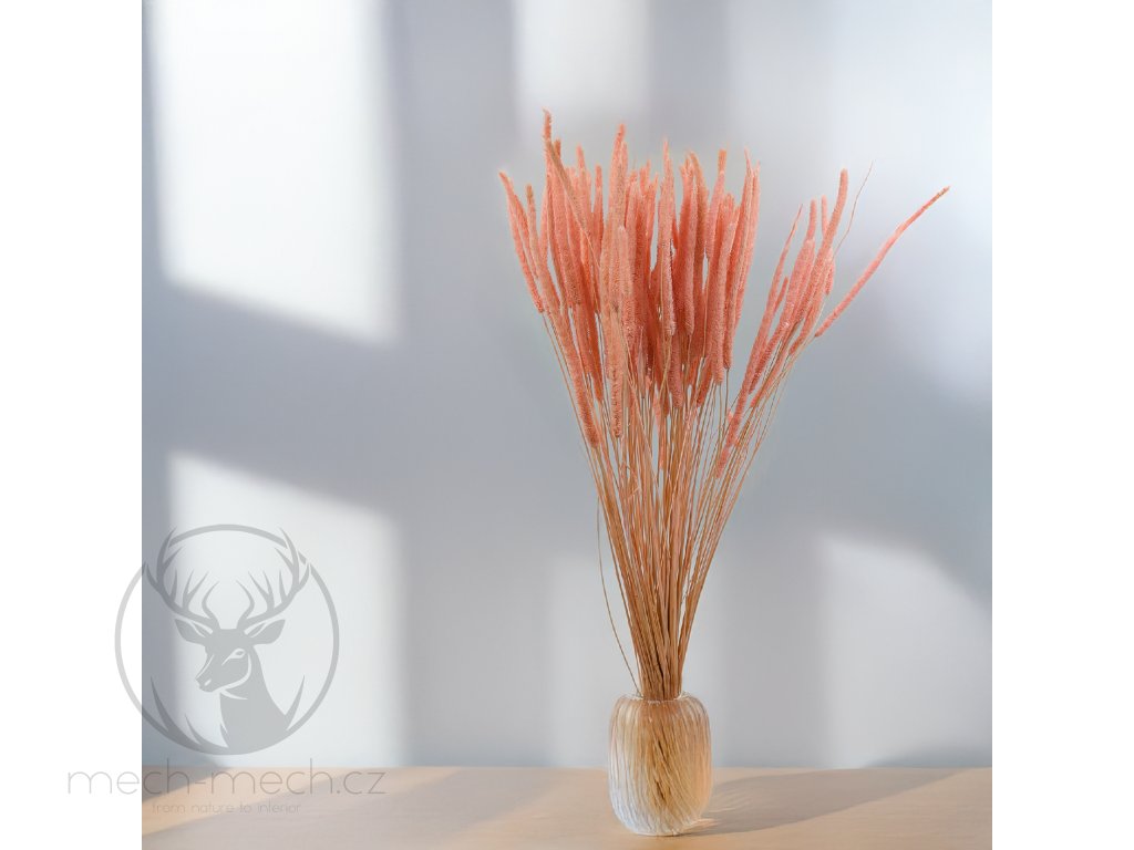 Nenechte se zmást, sušený Bojínek je sice nenápadná květina, ale stává se stále populárnějším dekoračním prvkem v interiérovém designu. Bojínek v pudrově růžovém odstínu představuje jedinečnou kombinaci estetiky a funkčnosti, která z něj činí atraktivní volbu pro širokou škálu stylů – od boho až po romantický vintage. Jeho jemně růžová barva s nádechem pudrové elegance vnáší do prostoru něhu, harmonii a jemný akcent bez přehánění. Díky své bohaté textuře a přirozenému vzhledu se skvěle hodí jak do minimalistických váz, tak do bohatých květinových aranžmá. Bojínek v tomto odstínu má jedinečný tvar s hrubou strukturou, která dodává kompozicím hloubku. Můžete ho použít v různých dekoračních kompozicích – od jednoduchých nástěnných ozdob až po svatební výzdoby či celoroční dekorace. Je odolný, vydrží dlouho svěží, nevyžaduje žádnou údržbu a zároveň působí velmi přirozeně. Sušený Bojínek v pudrově růžové barvě je navíc ekologickou alternativou k živým rostlinám – krásnou, trvalou a bez potřeby péče.