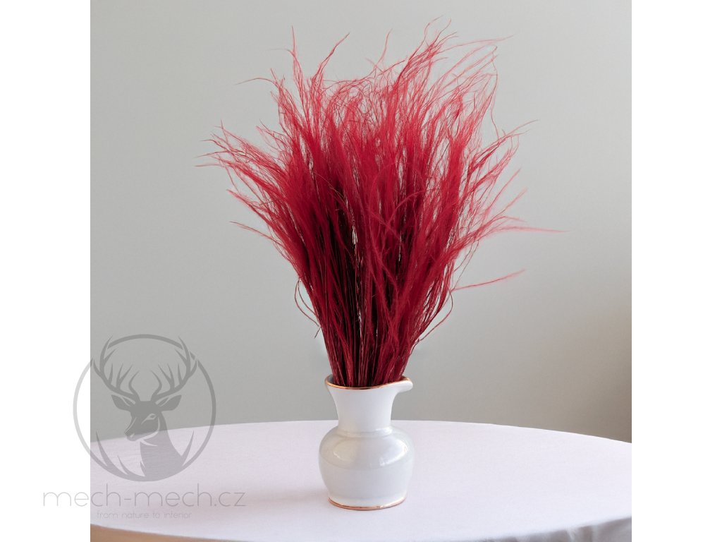Sušený Kavyl Ivanův (Stipa pennata) je ideální dekorací, která dodá Vašemu domovu elegantní nádech. Tato okouzlující sušená rostlina se po usušení stává nadčasovou ozdobou, která Vám bude dělat radost po mnoho let. Sušený Kavyl Ivanův vyniká štíhlými stonky dorůstajícími do výšky 40 cm a hustými bordó trsy, které dodávají interiéru jemný a vzdušný charakter. Květenství tvořené jemnými, pernatými osinami v délce 40 cm dodává bordó Kavylu jedinečný a elegantní vzhled. Tato sušená květina je nenáročná dekorace, která Vám usnadní život. Díky procesu sušení si Kavyl zachovává svůj tvar a bordó barvu po mnoho let a nevyžaduje žádnou zvláštní péči, stačí ho občas oprášit. Jedinečný a elegantní vzhled Kavylu Ivanova se hodí do rustikálních i moderních interiérů a snadno se kombinuje s jinými sušenými květinami a travinami.