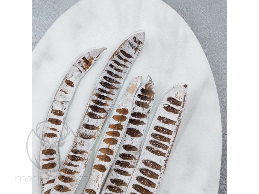 Sušený Machete Step Fruit se pyšní neobvyklým podlouhlým tvarem a texturou, která dodává dekoracím originální nádech. Jeho zasněžený odstín (bělený, s nádechem do šeda/bíla) je ideální pro celoroční interiérové dekorace a vnese do vašeho domova exotický, avšak tlumený nádech. Tento sušený plod můžete kombinovat s jinými přírodními materiály, jako je dřevo, kůra a mech, pro vytvoření harmonického a útulného interiéru. Odolnost a nulová údržba: Sušený Machete Step Fruit je odolný, vydrží dlouho a nemusíte se starat o jeho údržbu – vydrží vám po celé roky. Univerzální použití: Hodí se do široké škály interiérových stylů, od rustikálního a venkovského až po moderní a minimalistický. Machete Step Fruit se zasněženým odstínem je ideálním produktem pro celoroční interiérové dekorace.