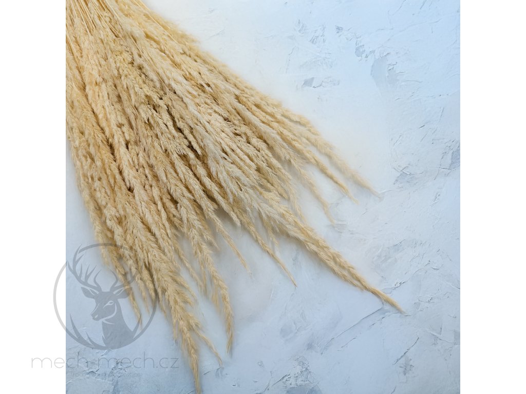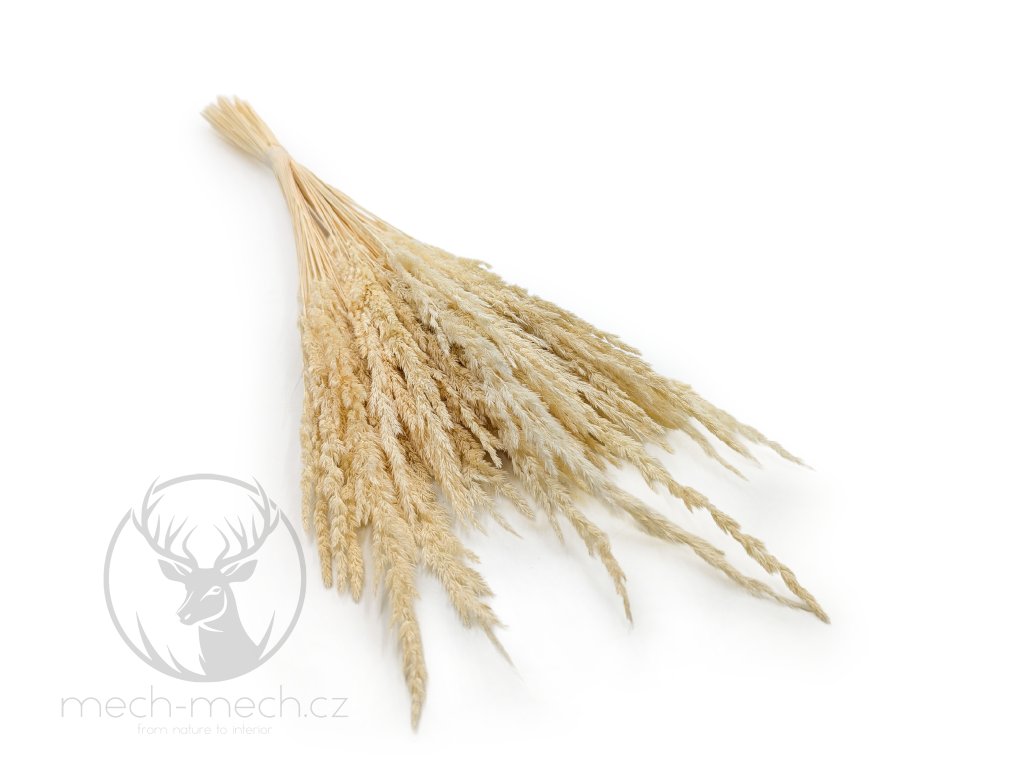Třtina křovištní (vybělená) je jedinečná dekorativní tráva s přirozeným a elegantním charakterem. Její jemné, huňaté peřové zakončení dodává prostorům vzdušnost a elegantní, neutrální akcent. Tyto krásné sušené trávy jsou ideální pro vytváření kytic, věnců, aranžmá na stůl a vnitřních dekorací. Je třeba si uvědomit, že sušená Třtina křovištní by neměla být vystavena povětrnostním podmínkám a nadměrnému slunečnímu záření, které může ovlivnit její trvanlivost a vzhled. Praskání nebo lámání stonků je normální pro tento typ produktů. Mini sušené Třtiny křovištní přidají do každého interiéru útulnost a styl, vytvářeje jedinečnou atmosféru.